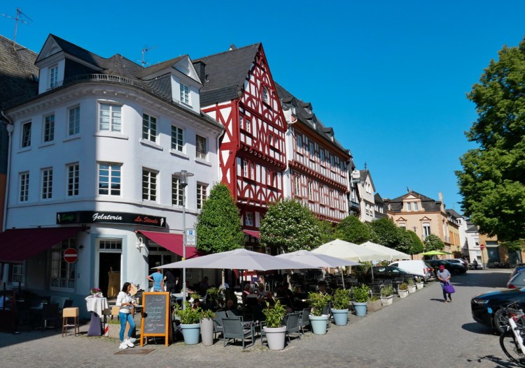 The first part of the cruise was up the Rhine. To Koblenz, Mainz, Boppard and Heidelberg. This took us through the Rhine Gorge, spectacular scenery with plenty of castles. This was one of only 2 long daytime cruising periods which was good as it meant we had plenty of time to visit the towns and cities. Once we realised that we could leave the guides and do our own thing that helped – although the guide in Heidelberg was very good, a light hearted commentary but also very informative.. The food on board and the unlimited wine at dinner was good. The food was not too much and there was always a good choice, served at your table.
