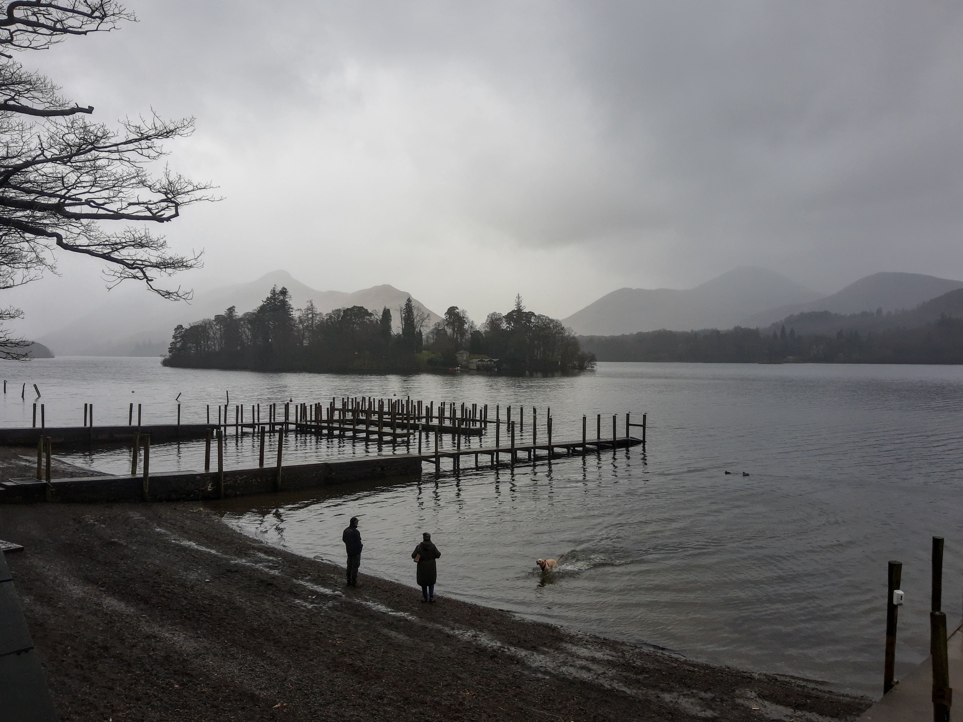 Day 2 saw the weather deteriorate. Started witha trip into Keswick and a walk along the shores of Derwent water during a lull in the weather. Good lunch in small cafe. finsihed wandering around Keswick and went bck to hotel to keep out of rain. Great pub in the middle of nowhere for dinner – the Snooty fox.